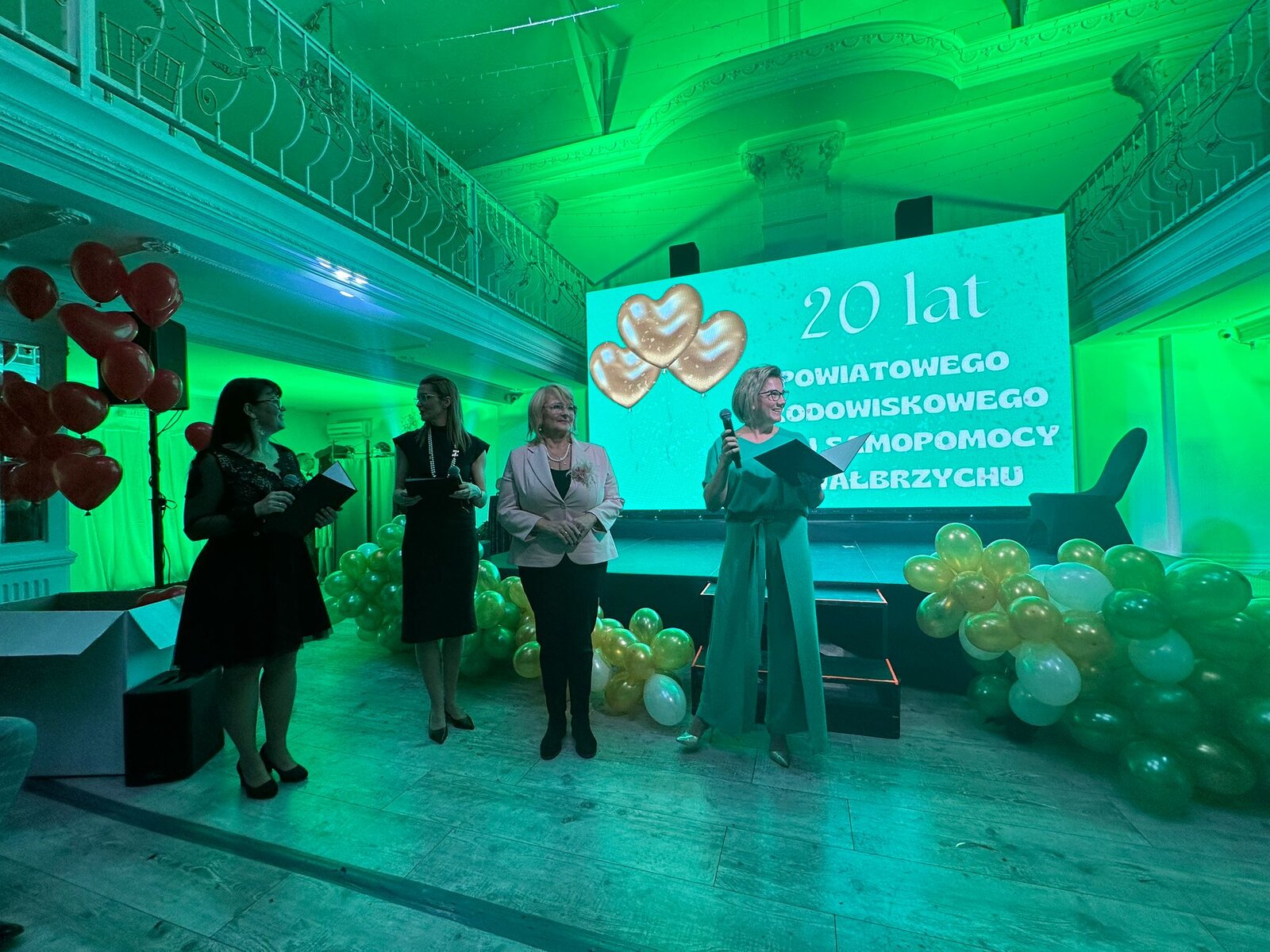 W środę 27 listopada odbyła się jubileuszowa uroczystość, w której oprócz pracowników i uczestników Domu wraz ze swoimi rodzinami wzięli udział zaproszeni goście na co dzień współpracujący z jednostką, m.in. włodarze gmin powiatu wałbrzyskiego, pracownicy jednostek pomocy społecznej oraz osoby współpracujące przy realizacji działań na rzecz osób z niepełnosprawnościami. W podziękowaniu za współpracę goście otrzymali pamiątkowe statuetki. W imieniu Zarządu Powiatu Wałbrzyskiego na ręce Pani Dyrektor Domu Marty Woźniak serdeczne gratulacje oraz życzenia dalszej owocnej i pełnej satysfakcji pracy na rzecz podopiecznych domu przekazali Ewa Dorosz- członek Zarządu, a także pracownicy Starostwa Powiatowego w Wałbrzychu - Sekretarz Powiatu Wioletta Muszyńska i Ryszard Skrobacki- Naczelnik Wydziału Organizacyjnego, Promocji i Oświaty.