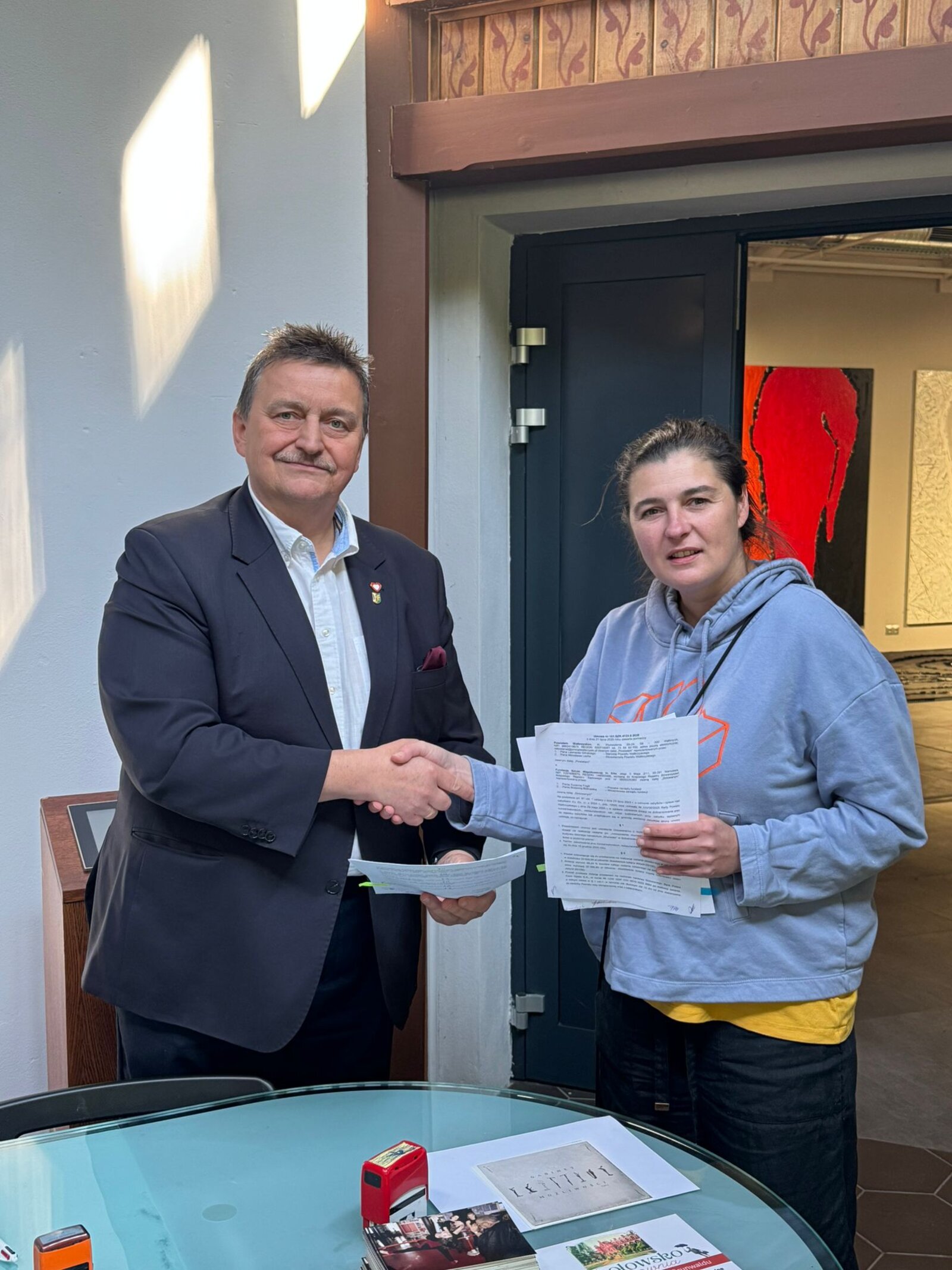 Umowę na przekazanie środków podpisał dziś Leonard Górski - Starosta Powiatu Wałbrzyskiego i Prezeska Fundacji Pani Zuzanna Fogtt.