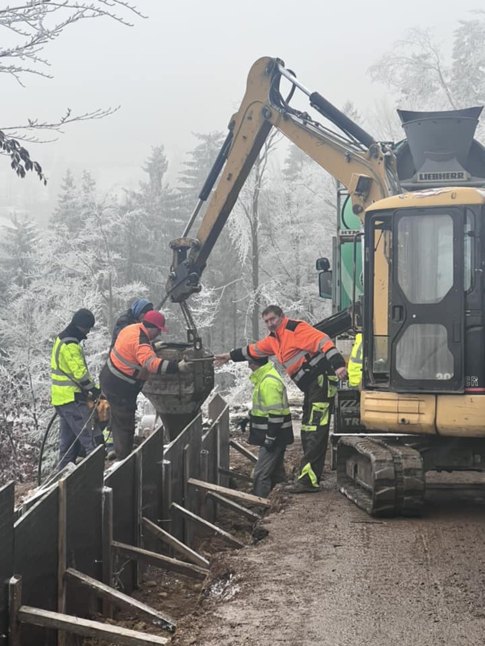 Trwa budowa ściany oporowej w ramach zadania „Modernizacja odcinka drogi powiatowej nr 3377D w Rzeczce wraz z zabezpieczeniem korpusu drogowego”.