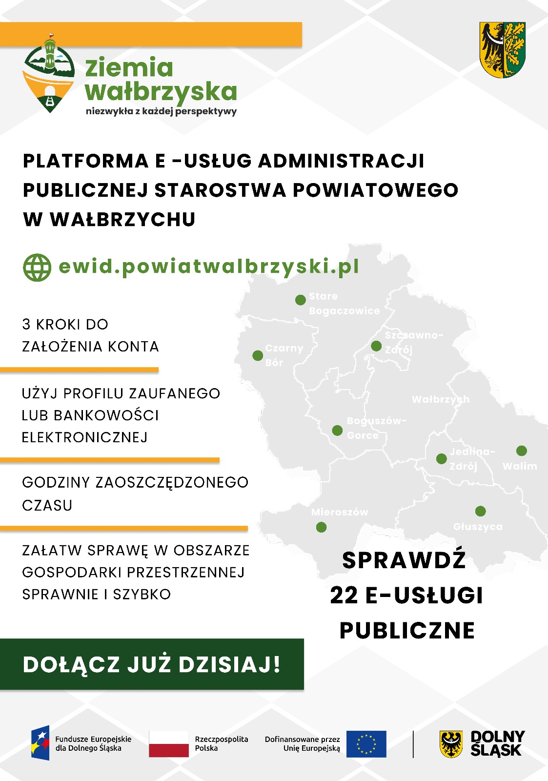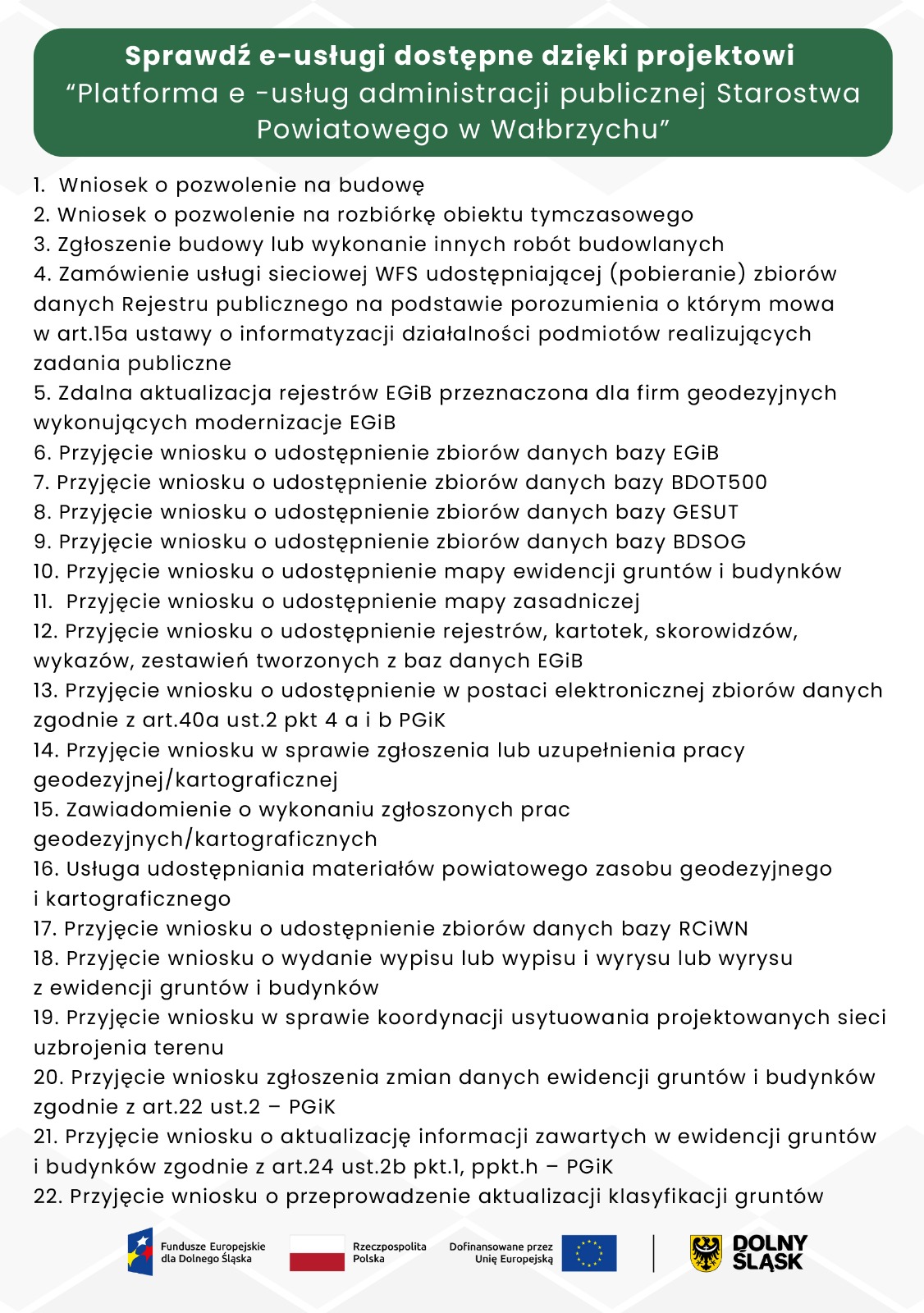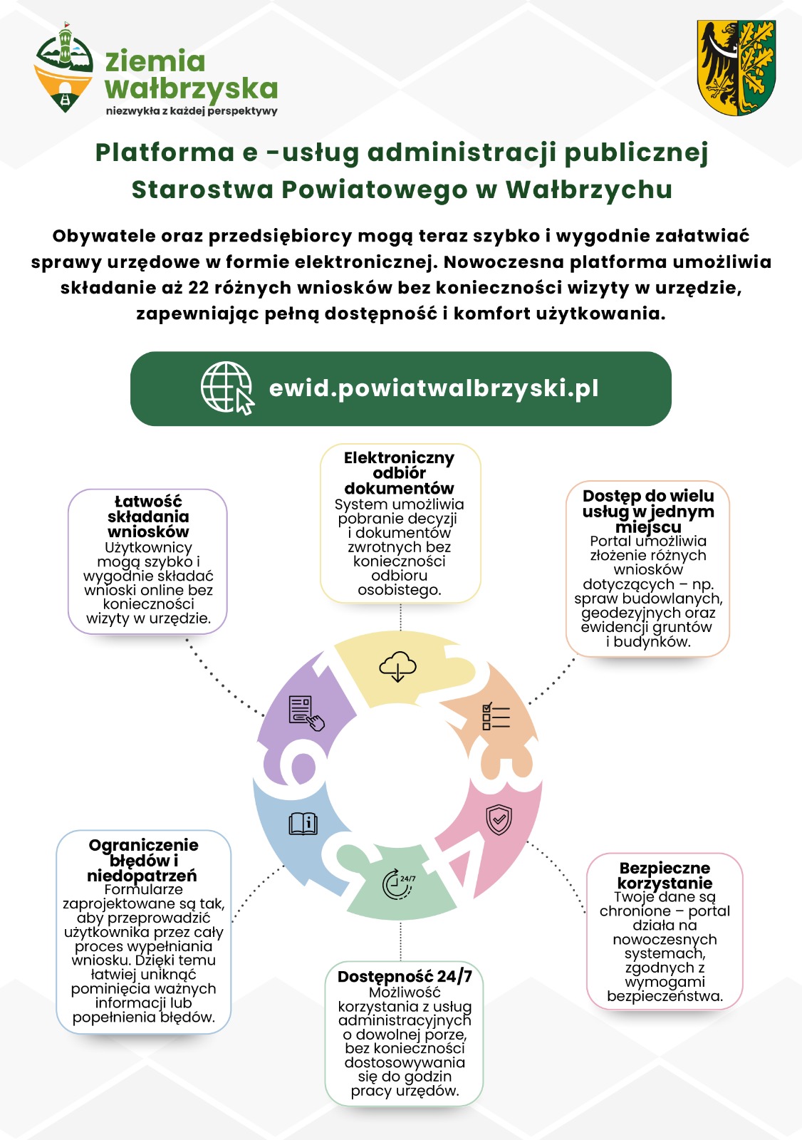 Zachęcamy do skorzystania z e-usług administracji publicznej Starostwa Powiatowego w Wałbrzychu.
